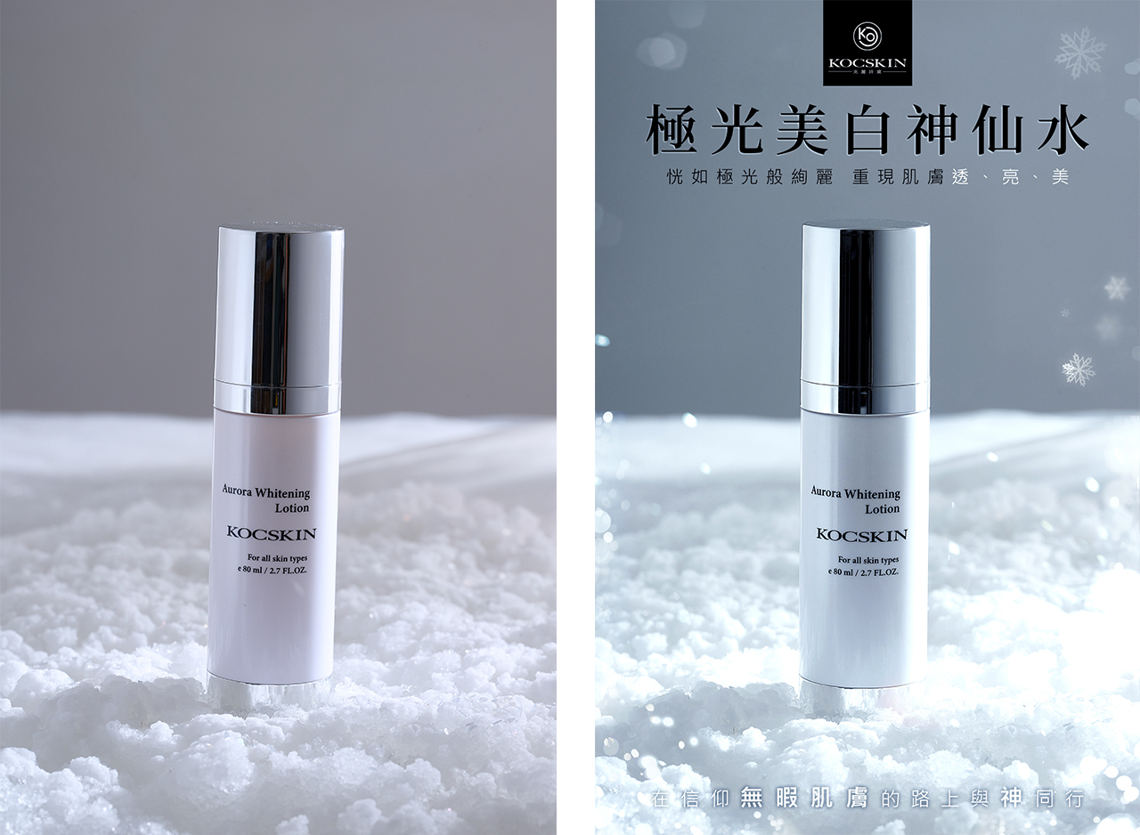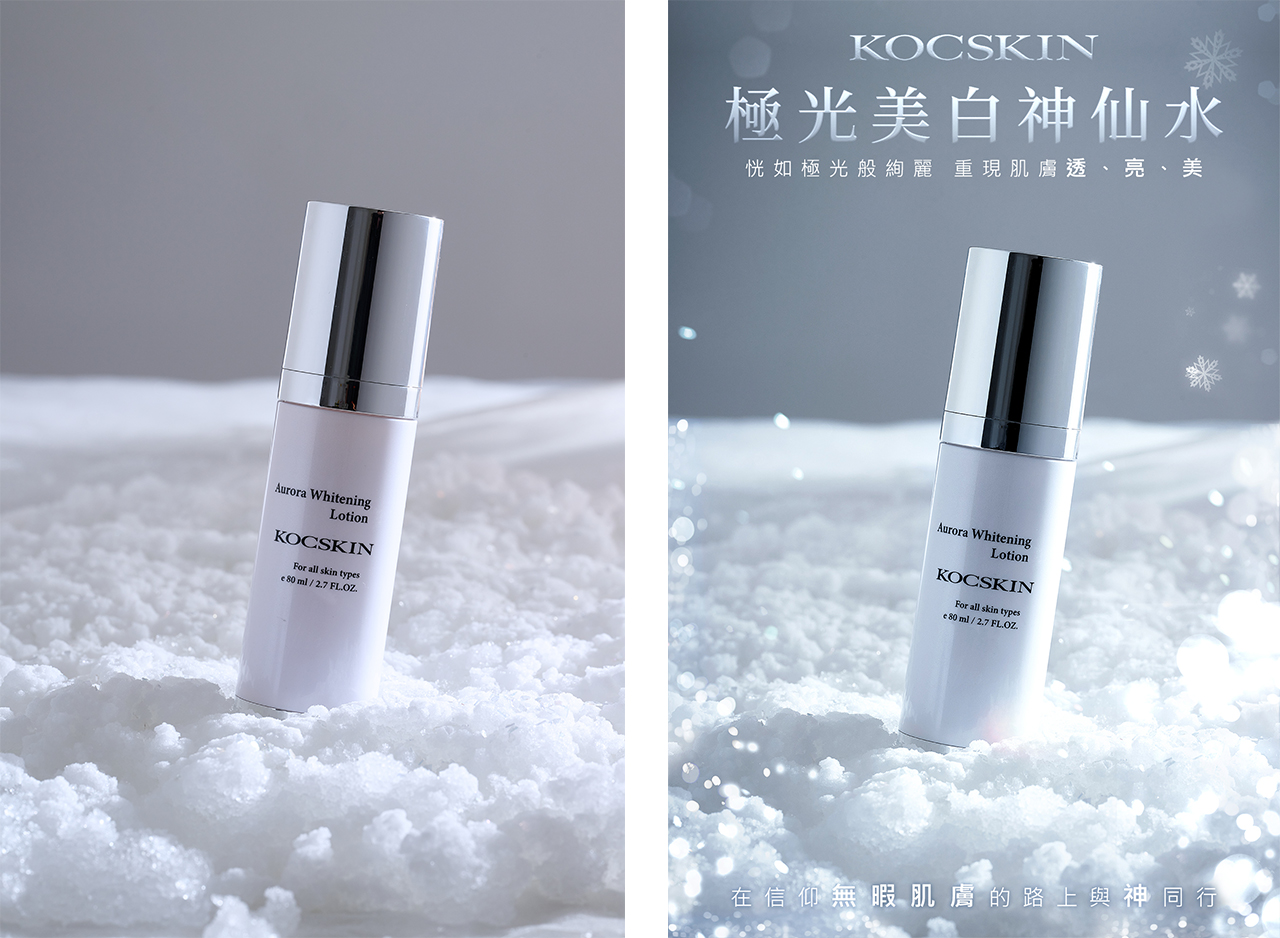 與攝影師溝通嘗試了假雪場景,將配色調整為冷色調並加上假雪光暈增添氛圍。以下嘗試了兩種主視覺