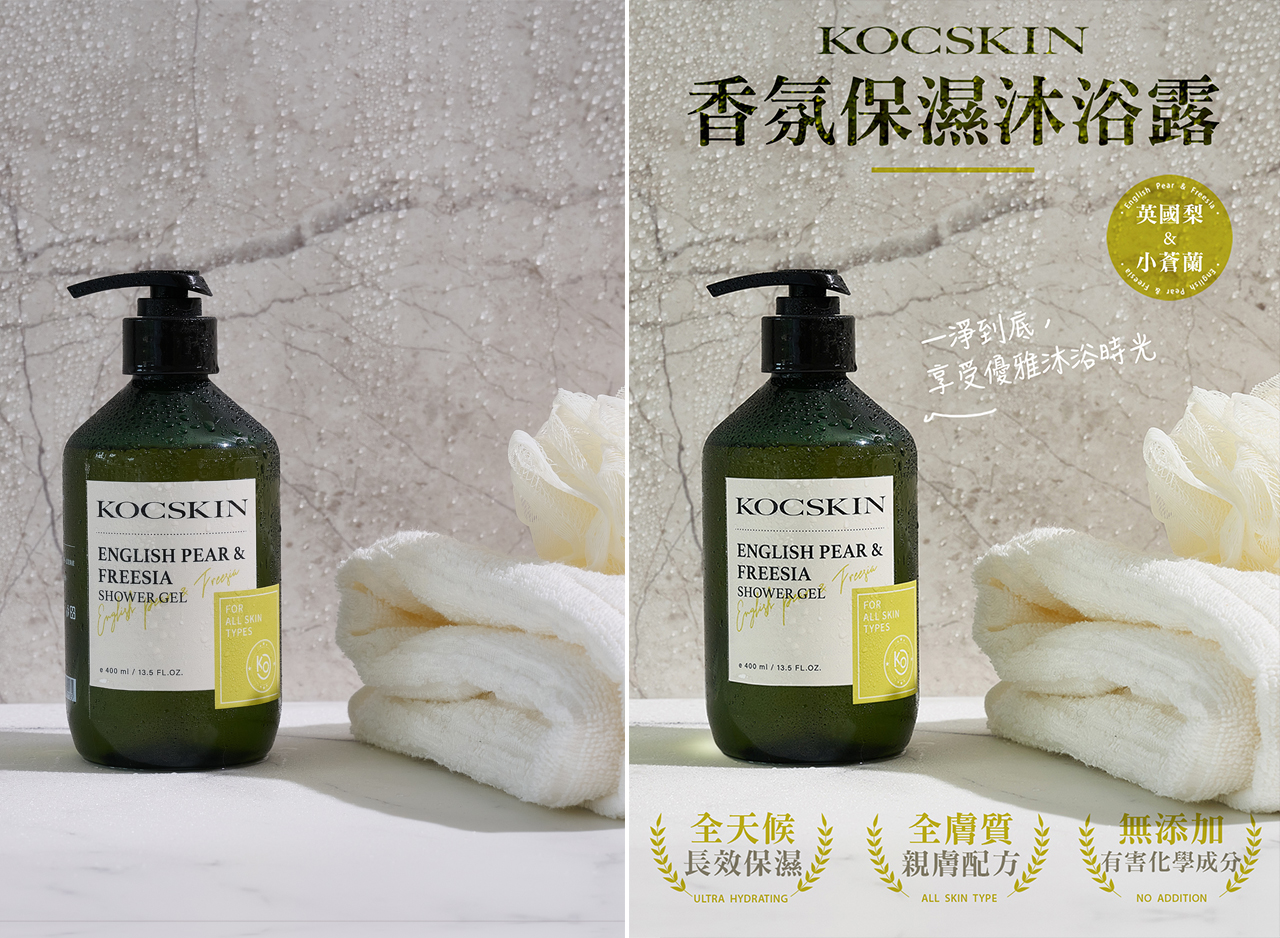 拍攝氛圍已足夠,只稍微調整明亮度讓產品過暗的地方清楚些,文字也盡量以畫面色系為主。